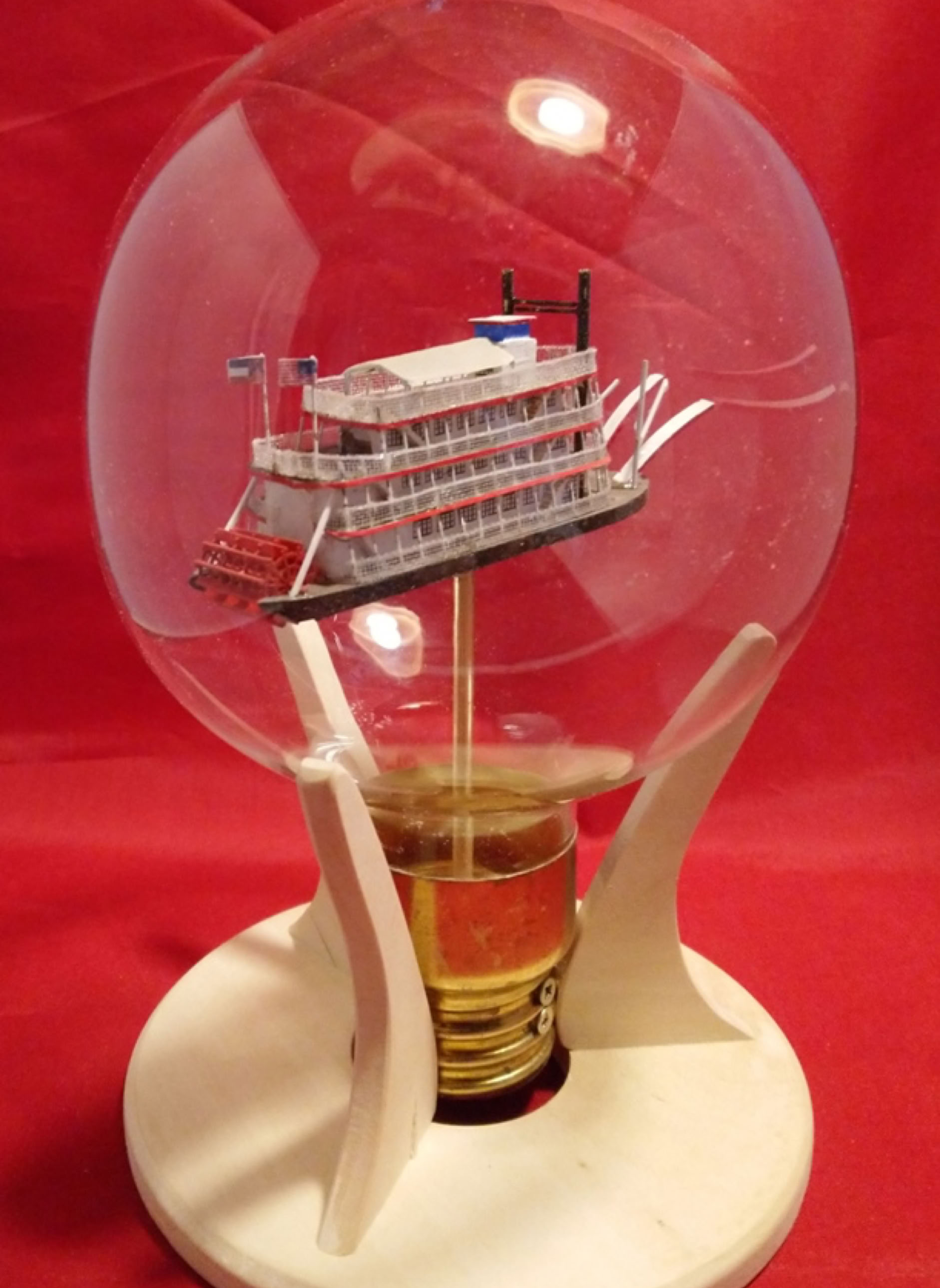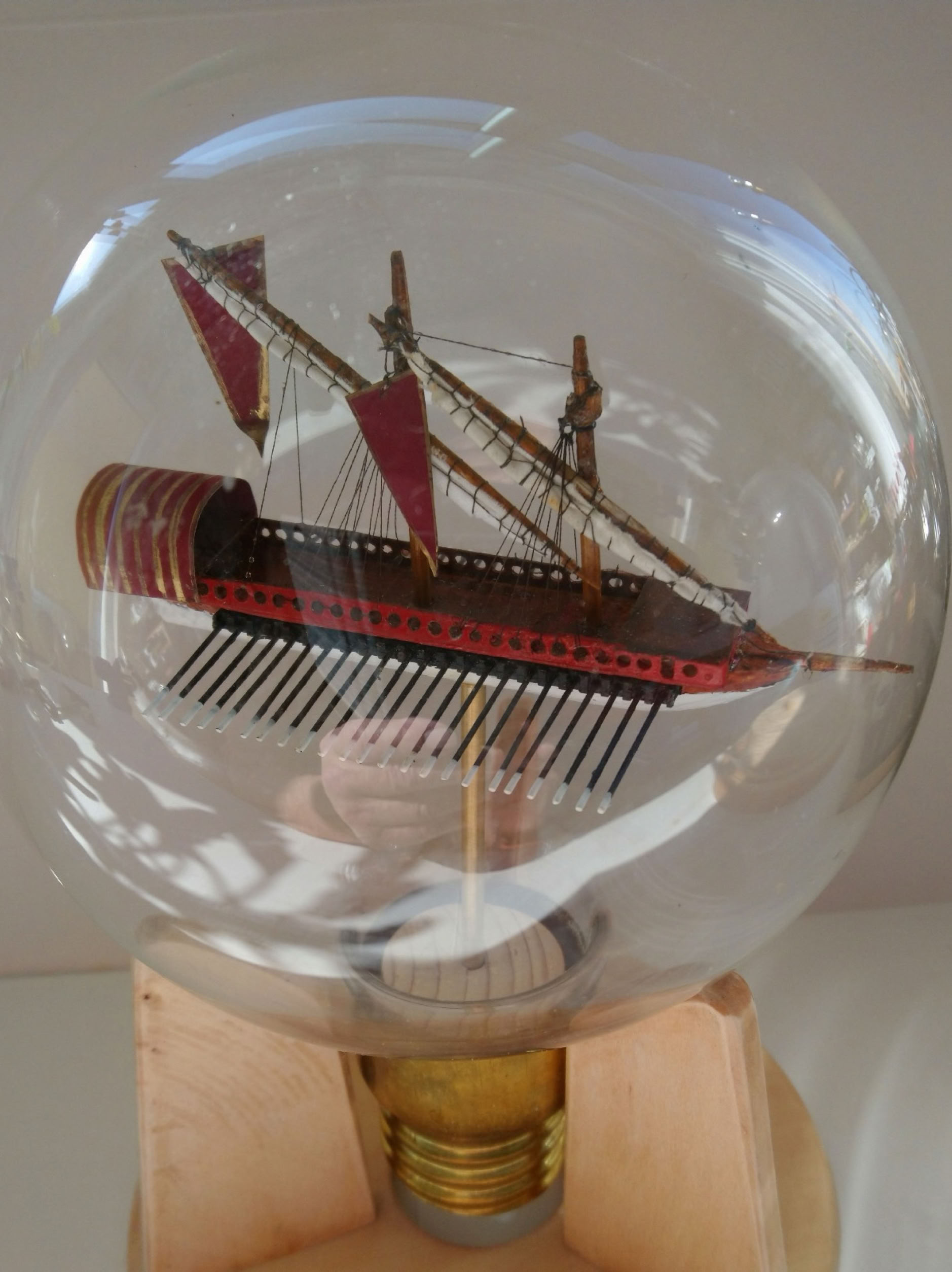 Diese Galeere ist in eine normale 40 Watt Glühbirne gebaut, wie sie bei Ihnen überall in der Wohnung hängt.