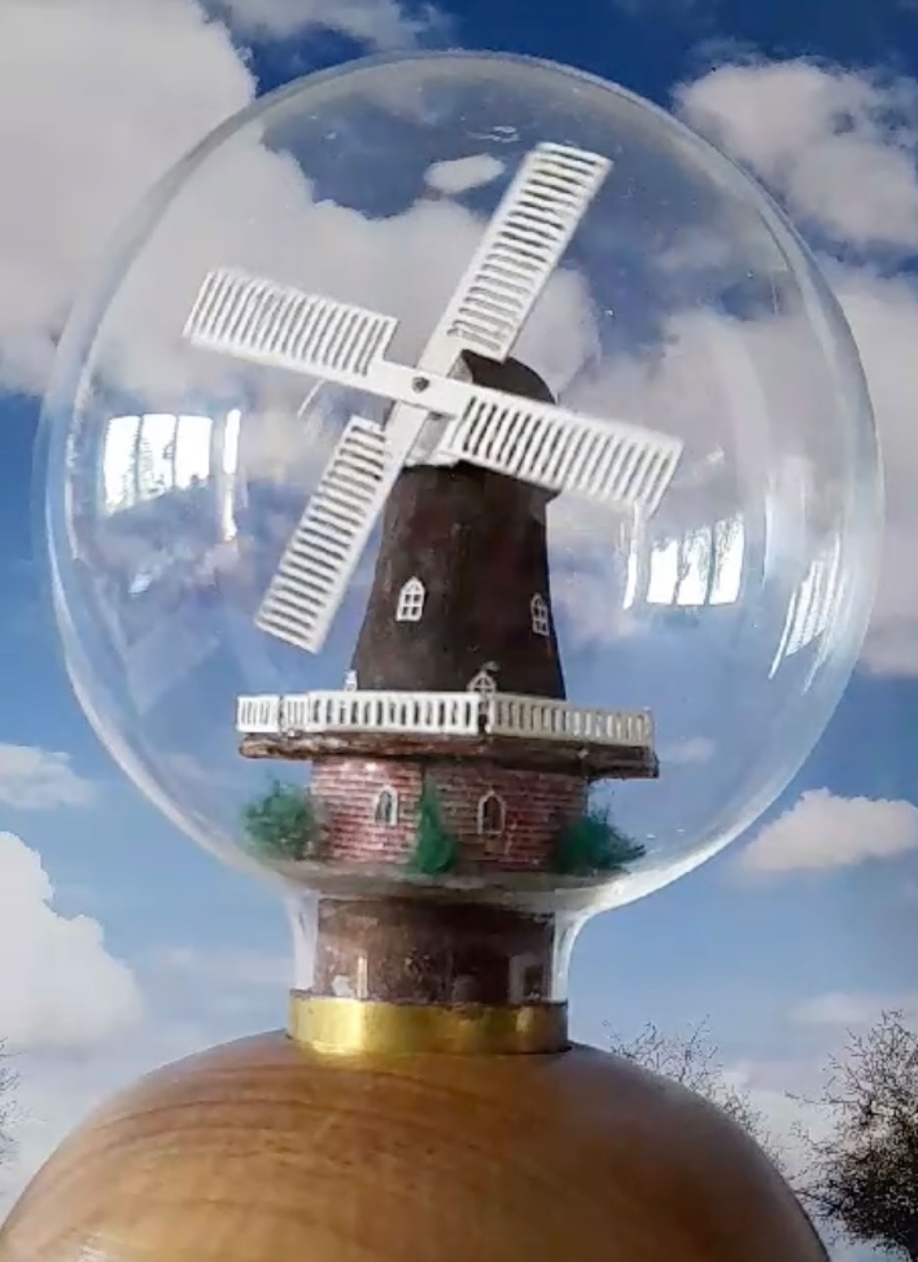 Funktionsmodell einer Windmühle mit sich drehenden Flügeln.
