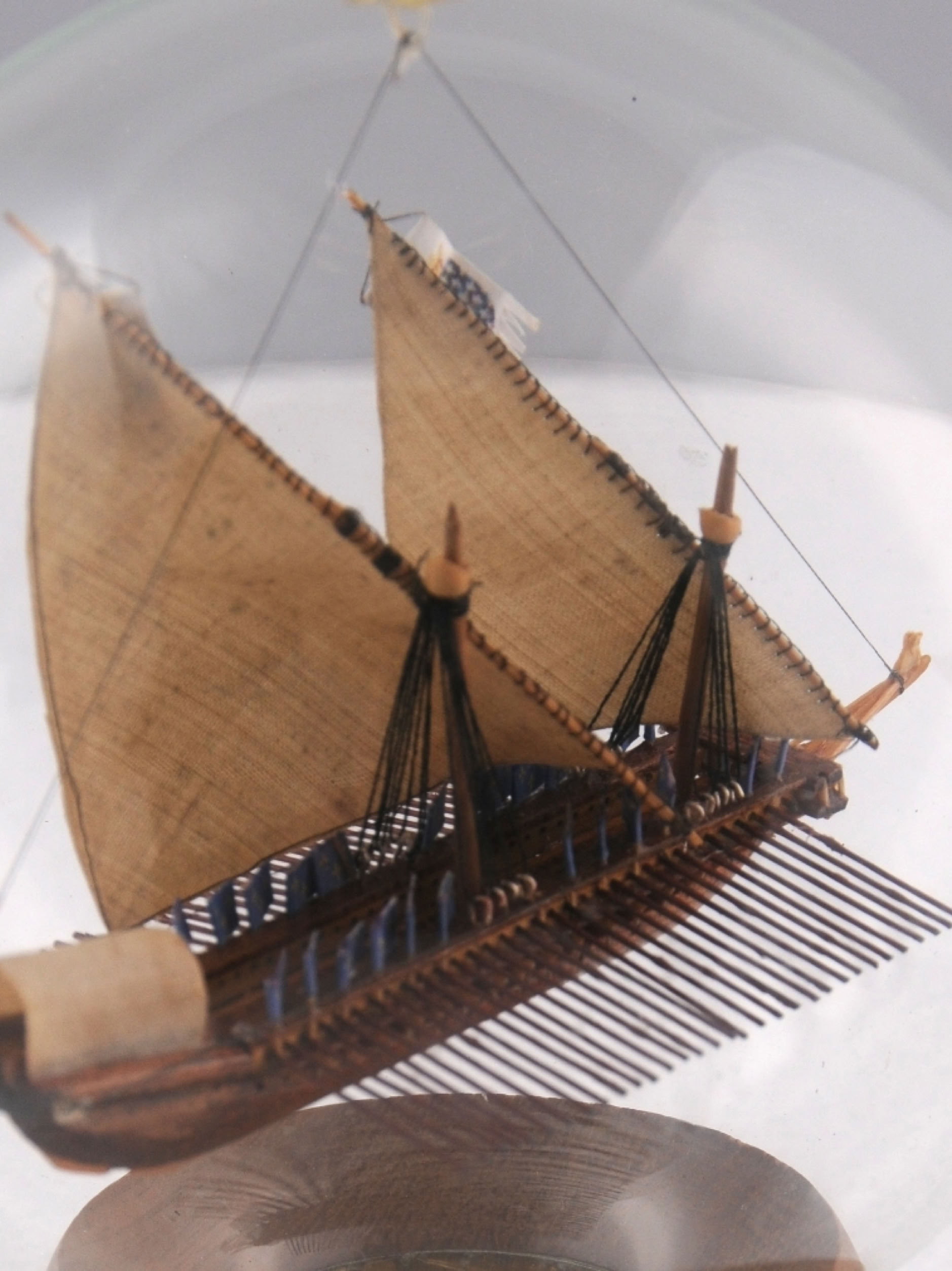 Der Schiffsrumpf ist mehrteilig und die aufwändige Takelung wurde erst innerhalb der Lampe angebracht!